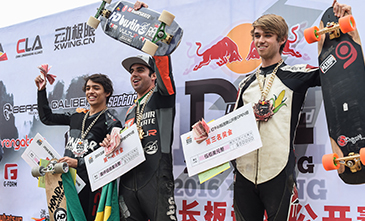 四川:4月25日,為期三天的2016紅牛長板速降公開賽暨IDF世界杯資格賽中國站在四川玉屏山落幕。當日,32名通過資格賽激烈爭奪晉級的選手進行了三輪殘酷的淘汰賽,32進16,16進8,8進4,最后巴西選手Max Ballesteros...