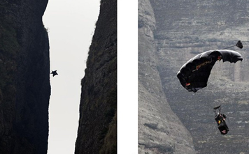 衢州:9月28日下午16時30分,美國翼裝俠杰布?克里斯攜手紅牛,再一次超乎大家想象成功穿越了“中國一線天之最”——浙江衢州江郎山一線天。...