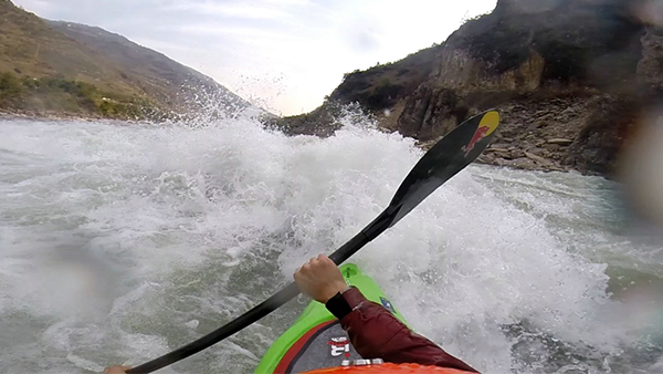 第一視角:2015紅牛花式皮艇挑戰賽比賽項目巨浪追逐賽的排位賽中,眾高手在怒江江面上乘風破浪,爭先競速