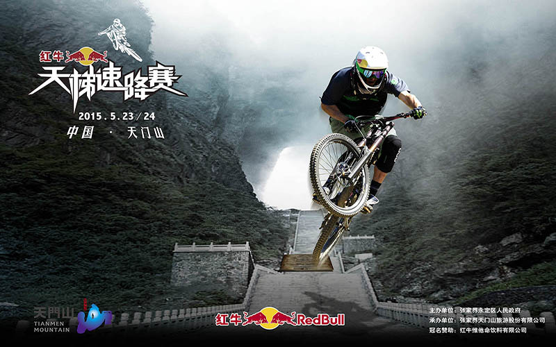 5月23日-24日,紅牛天梯速降賽邀請來自8個國家和地區15名山地車速降的頂級車手,聚集張家界天門山國家森林公園開展為期兩天的山地車墜山賽。以海拔1300米峭壁上的天門洞為起點,以999級天梯為主賽道,角逐速度和技巧兩個類別冠軍。這也是國內首次舉辦世界級別、難度極高的自行車墜山賽。
