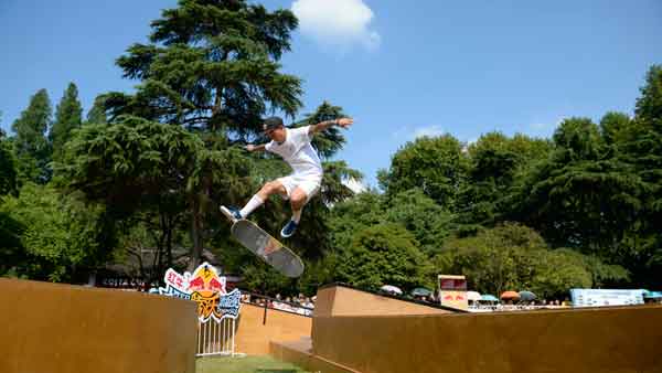 翻騰、跳躍、抓板,平時只有在視頻中才看得到的酷炫滑板“大招”,在8月2日西子湖畔的西湖天地大草坪上頻頻綻放。來自美國、中國、中國香港以及中國臺灣的23位滑板頂尖高手齊聚2015紅牛極限騰躍滑板賽,為杭州熱情的觀眾們獻(xiàn)上了一場精彩絕倫的滑板視覺盛宴。最終,來自遼寧的李祉興憑借著自己的招牌動作50-50桿上平衡滑行以及反腳內(nèi)轉(zhuǎn)360尖翻,一路過五關(guān)斬六將,成功衛(wèi)冕,奪得了本次比賽的冠軍,并收獲20000元人民幣的冠軍獎金。