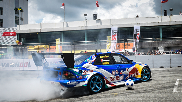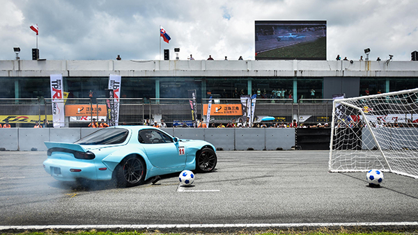 結合歐洲足球錦標賽的觀賽熱潮,本屆紅牛飄移大賽障礙賽結合足球飄移理念,給車手創新“考題”,特別設置飄移點球環節,讓到場觀眾激動不已。該環節利用汽車飄移急剎甩尾動作將足球撞入球門,比賽所用球門略小于七人制足球標準球門,車手在起步之后將按照規定路線高速滑過一個又一個發卡彎,經S彎繞過數個障礙,最終將足球一舉貫入球網中,障礙挑戰賽才算最終完成,用時最短的車手獲得冠軍。