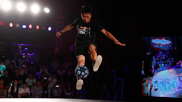 圖一:2016紅牛花式足球世界杯北京站晉級(jí)選手劉沅鑫比賽動(dòng)作