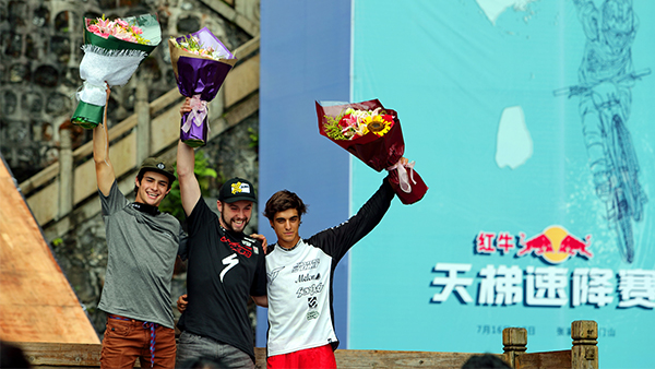 果不其然,盡管有11位選手信心滿滿要去挑戰(zhàn)去年衛(wèi)冕冠軍加拿大騎手加勒特•比特創(chuàng)造的全程29.940秒成績(jī)的紀(jì)錄,原本計(jì)劃在7月17日中午進(jìn)行的競(jìng)速賽大決戰(zhàn)及直播,因?yàn)閺埣医缣扉T山一場(chǎng)突如其來(lái)的大雨被迫停止,考慮到安全,組委會(huì)決定采用排位賽中選手的成績(jī)作為今年競(jìng)速賽最終成績(jī)。來(lái)自巴西的騎手貝爾納多·克魯茲最終以15.164秒最快的速度獲得冠軍,美國(guó)騎手里德·伯格斯、加拿大騎手米奇·初比分別以15.600秒和16.287秒分獲亞軍和季軍。巔峰對(duì)決只差幾秒,可謂競(jìng)爭(zhēng)激烈。