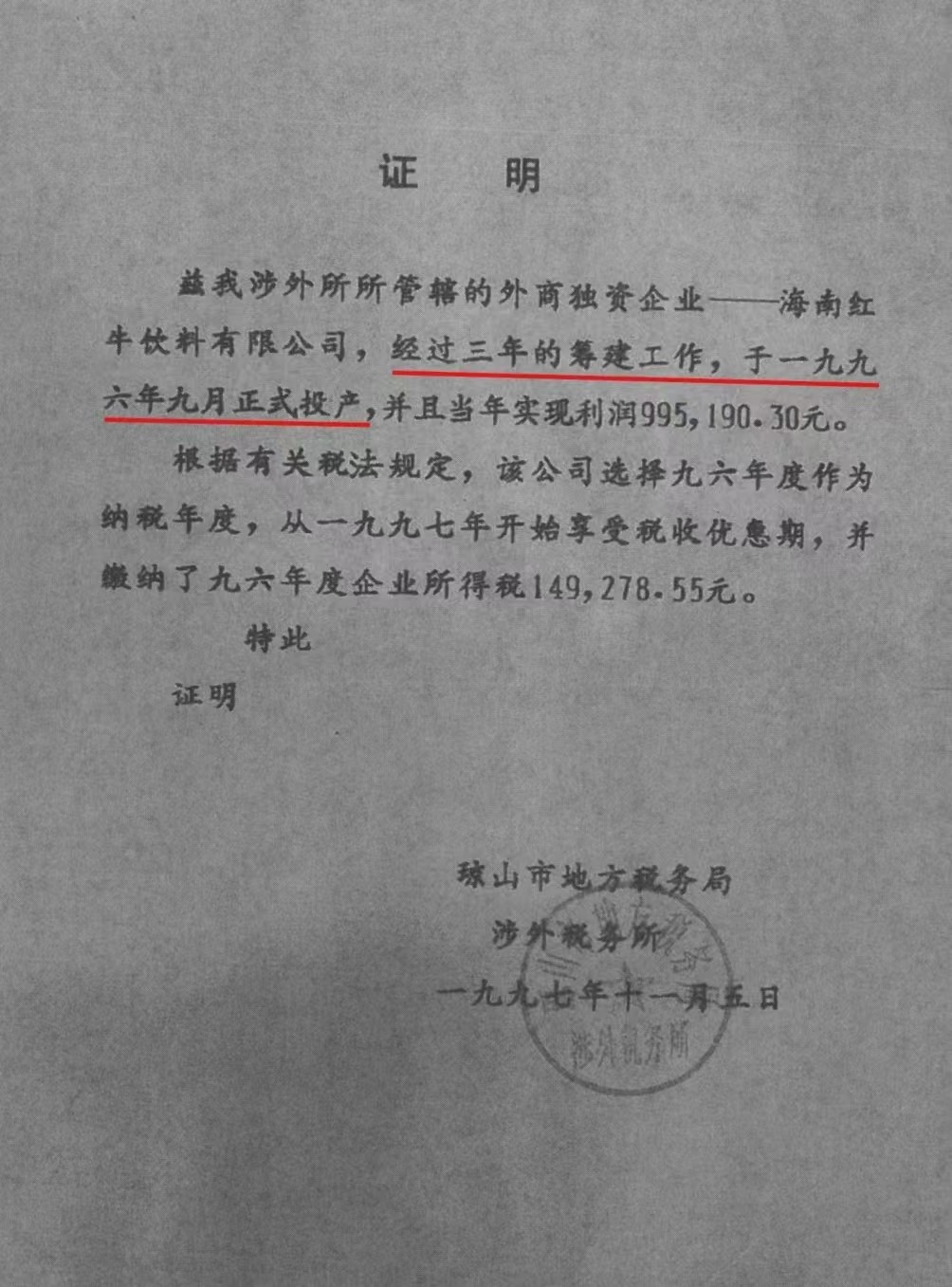 不含紅牛飲料所必須的“牛磺酸”,不具備“紅牛飲料產品標準”所要求的成分和含量。許先生的紅牛飲料無法在中國獲得生產。事實上,根據海南省瓊山市地方稅務局的證明,海南紅牛1996年9月接受中國紅牛委托加工前,在中國不能生產紅牛飲料。