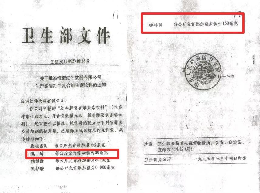 共十種成份),但1995年3月13日衛生部批復僅批準了