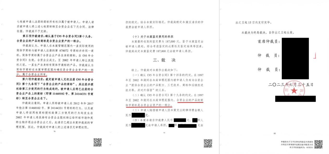深圳國際仲裁院裁決“合資企業的產品的簡體字商標是合資公司資產的一部分”