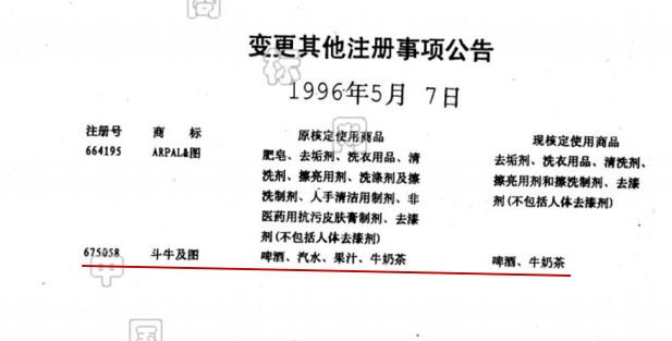 深圳中浩購買斗牛圖案商標后變更了斗牛及圖商標使用范圍