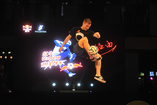 ? ? 2014紅牛花式足球世界杯是2014/15花式足球世界巡回賽揭幕戰,也是規格最高的一站,這是花式足球世界杯首次在中國舉行。經過上海、廣州和北京三站選拔賽,有6位中國選手也站在了世界杯總決賽的舞臺上。雖然他們在排名賽因實力和經驗原因,未能進入前16名的淘汰賽,但能夠有機會在世界大賽的舞臺上展示中國花式足球,已經獲得了成功。6名中國選手中來自湖北的陳亞光成績最好,獲得排位賽第17名,他們的表現也贏得了裁判和其他選手們的肯定。世界花式足球聯合會主席丹尼爾·伍德先生表示,中國選手完全有實力進入世界排名的前16位,最快明年,花式足球世界杯總決賽的賽場就會出現中國選手的身影。
