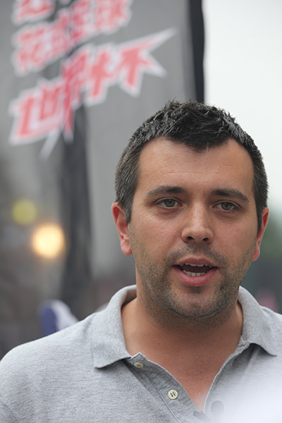 “All?you?need?is?a?ball!(你所需要的只是一個足球)”這是世界花式足球聯合會(簡稱F3)主席丹尼爾·伍德最習慣掛在嘴邊的一句話,在全世界從事花式足球運動的人群中間廣為流傳。5月末6月初,這位幾乎把所有時間都用來推廣花式足球的英國人來到北京,為紅牛花式足球世界杯北京站選拔賽助陣。?
