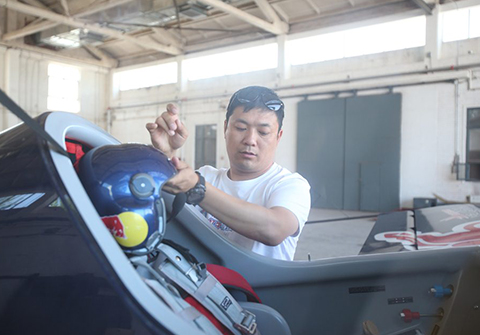 中國第一位駕駛該機型的無限制級特技飛行員,37歲的沈陽人趙偉。