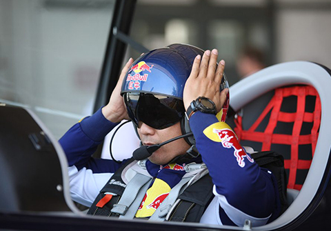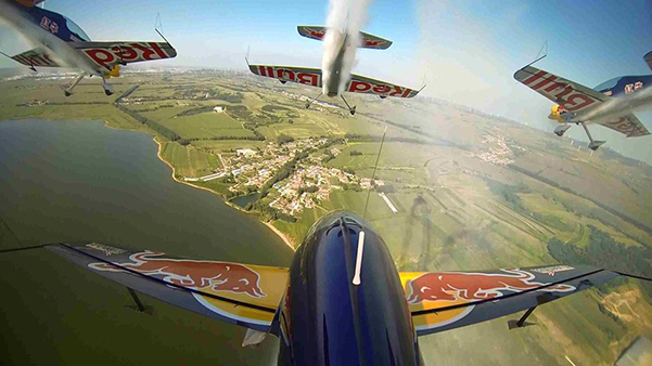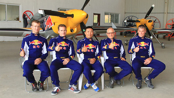 中國紅牛特技飛行隊隊員馬克·薩姆森與隊友合作表演四機編隊表演