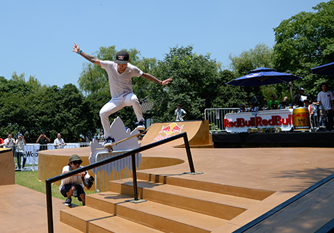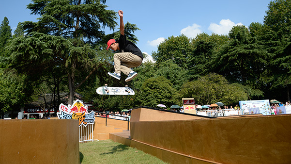 在8月2日西子湖畔的西湖天地大草坪上,來自美國、中國、中國香港以及中國臺灣的23位滑板頂尖高手齊聚2015紅牛極限騰躍滑板賽,為杭州熱情的觀眾們獻上了一場精彩絕倫的滑板視覺盛宴。